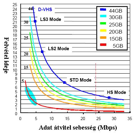 A DVD felvevő által fogadott és dekódolt jeleket tömörítik egy MPEG kódolóval és úgy rögzítik a lemezre. Hogy a HDTV által sugárzott adást fel tudjuk venni HDTV MPEG2 kódoló szükséges. Azonban még ilyen eszközt nem gyártottak otthoni használatra. A BS digitális adás felvétele esetén a jelek egy program adatfolyamaként („program stream”) érkeznek fixált gyorsasággal, ami 24 Mbps-t jelent HDTV programonként. A BS digitális sugárzása esetén megvan a lehetőség arra, hogy a kiegészítő adatfolyam többszörös legyen, és kívánalom, hogy ezt az adatot felvegyük és olvassuk. Az ábra mutatja, a felvételi kapacitást az adatforgalom és a felvételi idő függvényében. Egy 2 órás felvételhez 22 GB szükséges, ami körülbelül 5-szöröse egy DVD-nek.