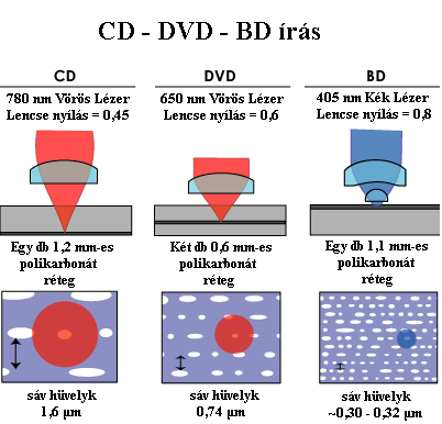 Eltérően a jelenlegi DVD -ktől, amik vörös lézert használnak az adatok írásához és olvasásához, a BD kék lézert használ (amiről egyébként a nevét is kapta). A kék lézer rövidebb hullámhosszon működik (405 nanométer), mint a vörös lézer (650 nanométer).